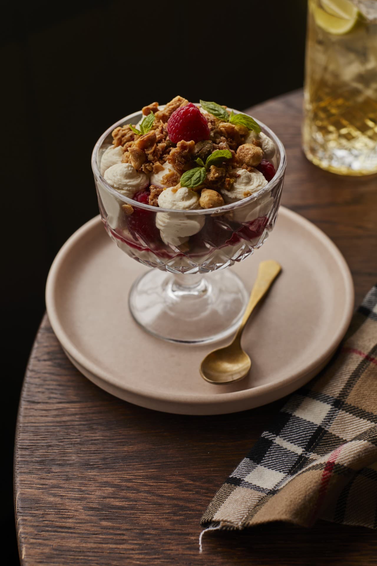 - Raspberry Cranachan: fresh raspberries & coulis, pistachio, hazelnut & maple crumble, whisky cream
