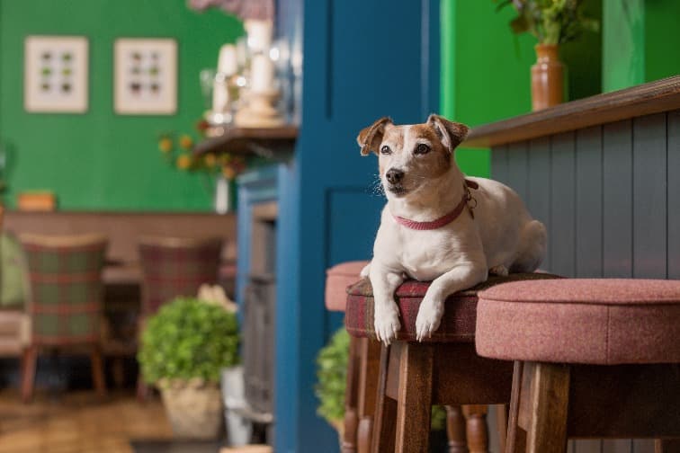 Dogs are welcome throughout many parts of our pub. Whether you’re popping in for a pint or enjoying a long, lazy lunch, you’ll find dog friendly spaces in The Red Deer where your pooch can settle in comfortably by your side.
